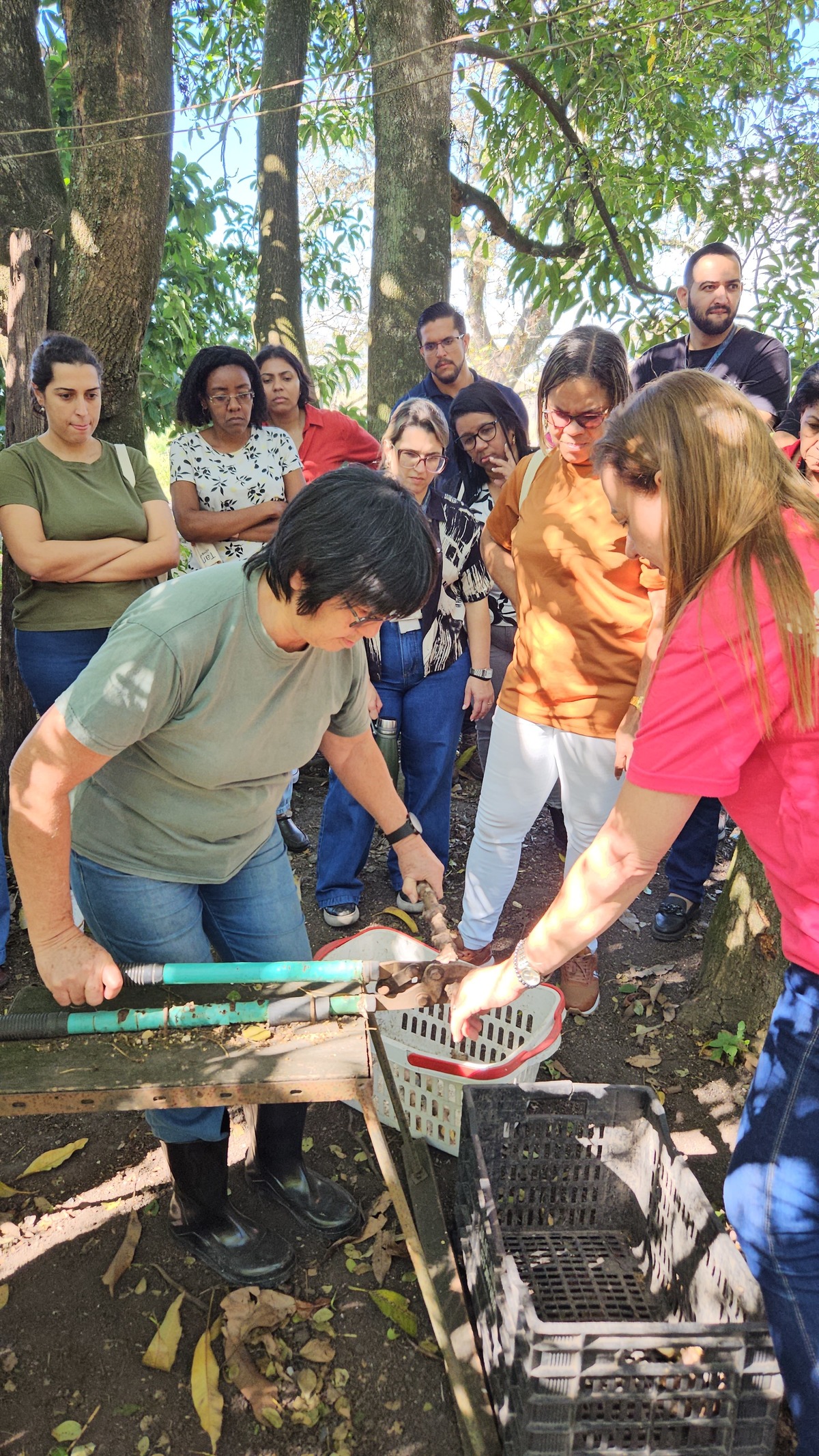 Neste dia de visitação, os funcionários das empresas juntamente com a Emater estiveram em 03 sítios, 01 em Santa Cruz e 02 no Mendanha em Campo Grande. Lá puderam ouvir as historias de cada agricultor, as dinâmicas do dia a dia do agricultor.
